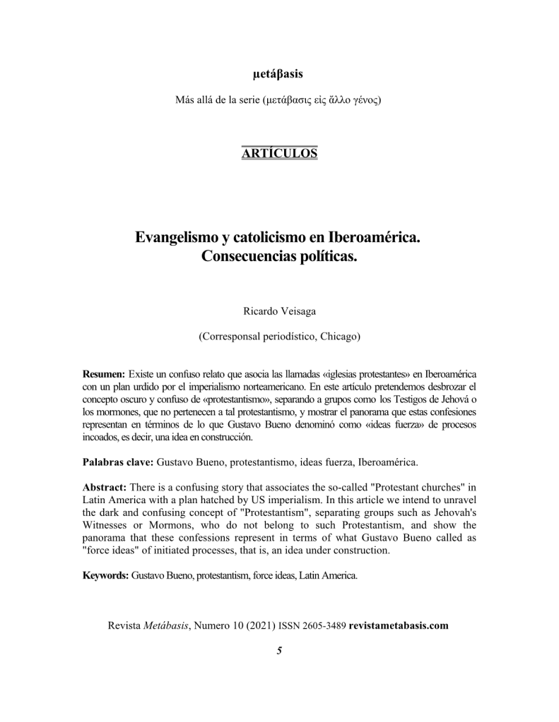Veisaga, R. (2021). Evangelismo y catolicismo en Iberoamérica. Consecuencias políticas.