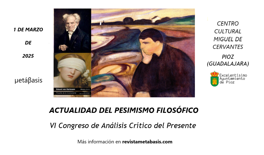 Dados estos antecedentes, hemos considerado desde Revista Metábasis dedicar nuestro VI Congreso de Análisis Crítico del Presente a la actualidad del pesimismo filosófico. Para ello contaremos con la presencia de un habitual en estos eventos, el profesor Felipe Giménez Pérez, que realizó una importante aportación a nuestro número monográfico sobre el pesimismo, así como con un invitado de excepción: se trata del profesor Manuel Pérez Cornejo, traductor de importantes obras de la corriente pesimista, entre las que se encuentran la Filosofía de la redención de Phillip Maindlander como la recopilación de textos de la Filosofía de lo inconsciente de Eduard Von Hartmann, que vio la luz en el año 2022.